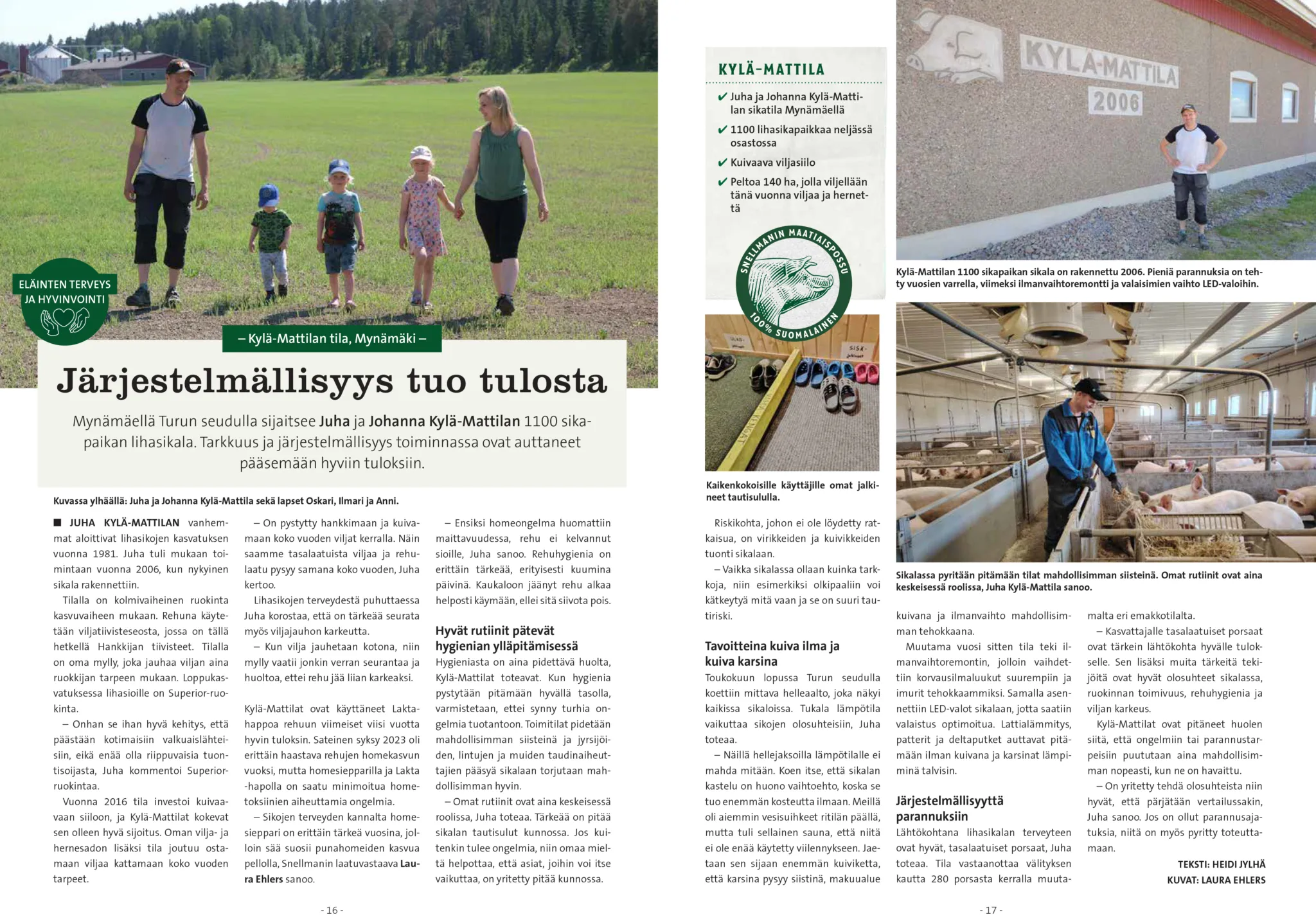 Tämän vuoden joulukuussa Snellmanin ja Kylä-Mattiloiden yhteistä taivalta tulee täyteen tasan kymmenen vuotta. Vuoden 2024 kesällä tilan kehitystä ja taivalta avattiin myös Snellmanin Kunnon Perhetila-tuottajalehdesssä (ks. kuva alla).
