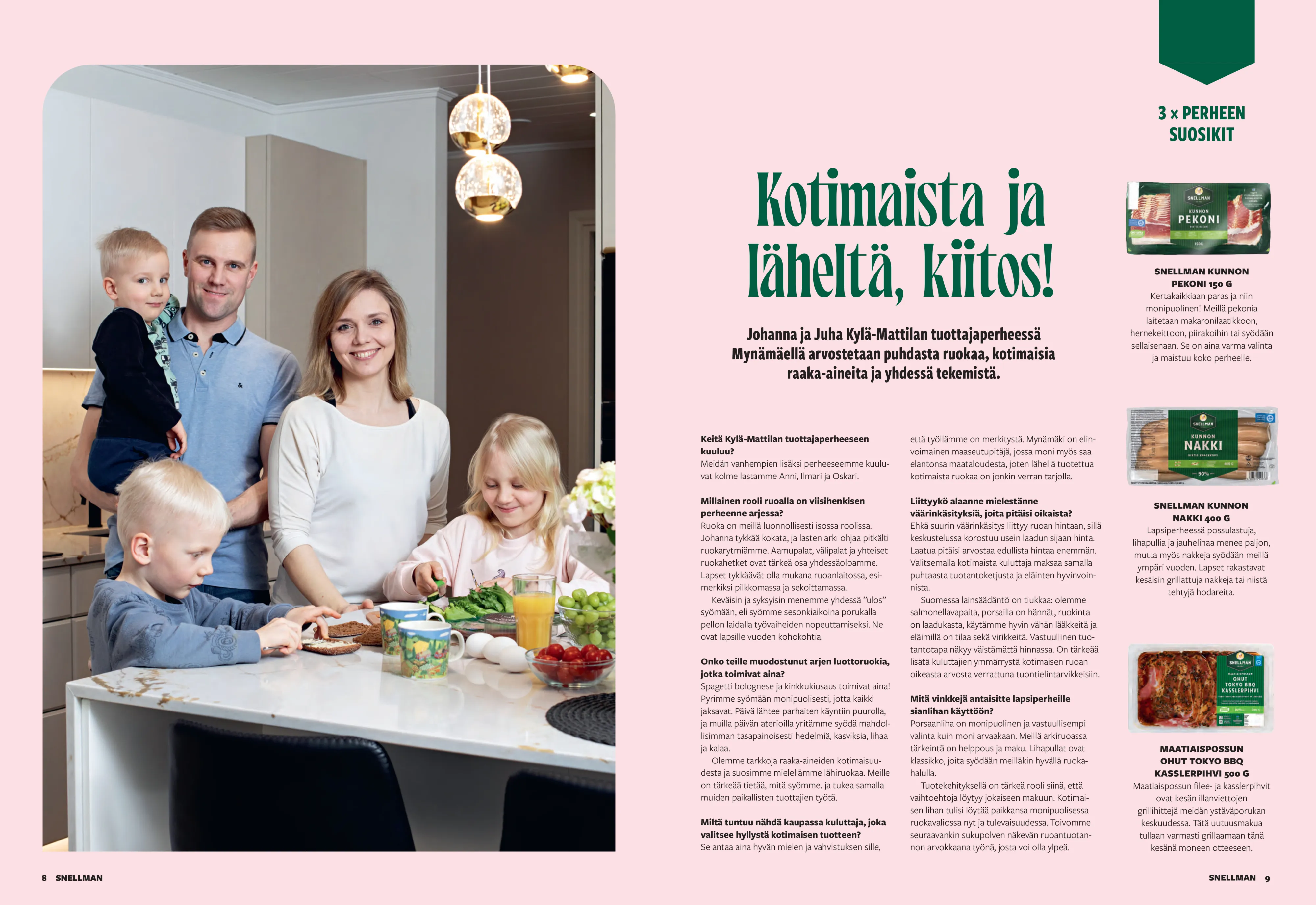 – Porsaanliha on monipuolinen ja vastuullisempi valinta kuin moni arvaakaan. Meillä arkiruoassa tärkeintä on helppous ja maku. Lihapullat ovat klassikko, joita syödään meilläkin hyvällä ruokahalulla. Tuotekehityksellä on tärkeä rooli siinä, että vaihtoehtoja löytyy jokaiseen makuun. Kotimaisen lihan tulisi löytää paikkansa monipuolisessa ruokavaliossa nyt ja tulevaisuudessa. Toivomme seuraavankin sukupolven näkevän ruoantuotannon arvokkaana työnä, josta voi olla ylpeä.