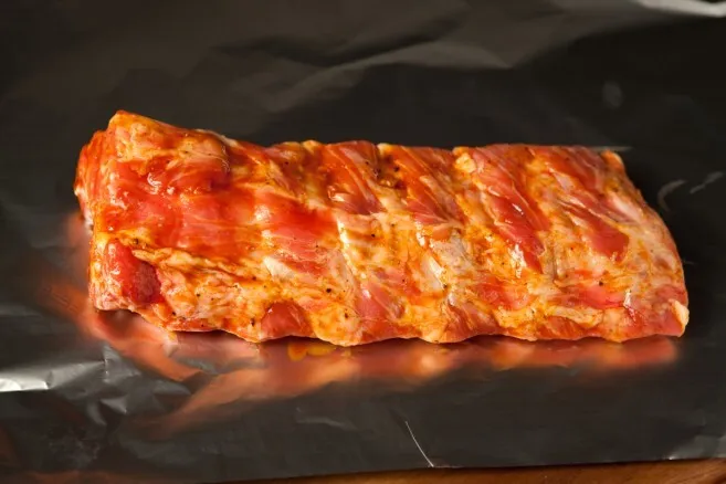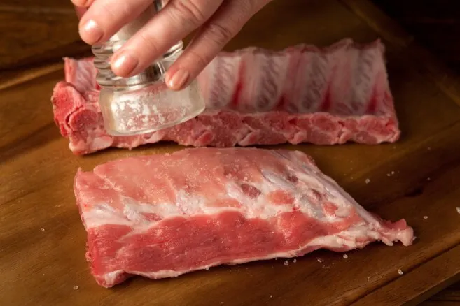1. Ota liha huoneenlämpöön tunti ennen valmistusta. Pyyhi lihan pinta talouspaperilla ennen kuin maustat ribsit suolalla.