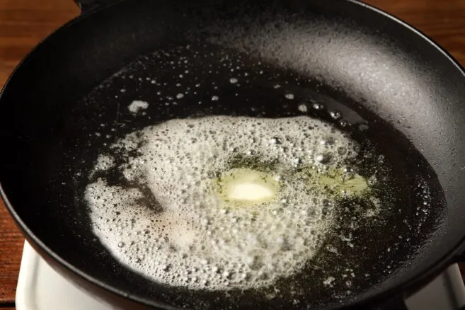 2. Kuumenna pannu tarpeeksi kuumaksi. Voit halutessasi käyttää ruskistukseen hieman öljyä tai voi-öljyseosta.