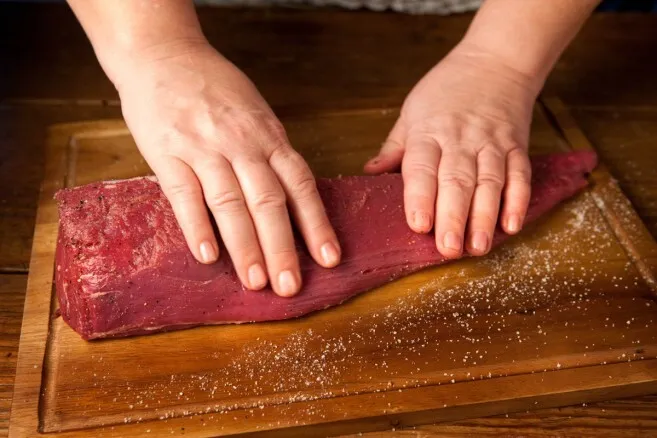 Katso, miten naudan sisäfileen paistaminen kokonaisena tapahtuu.