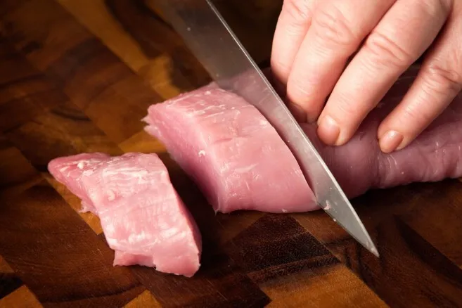 Porsaan sisäfileen leikkaaminen pihveiksi