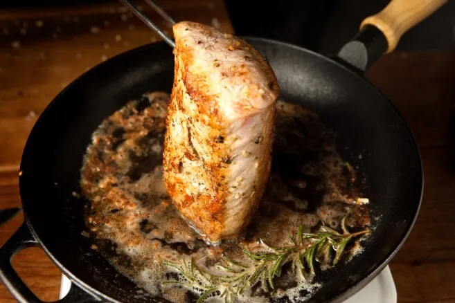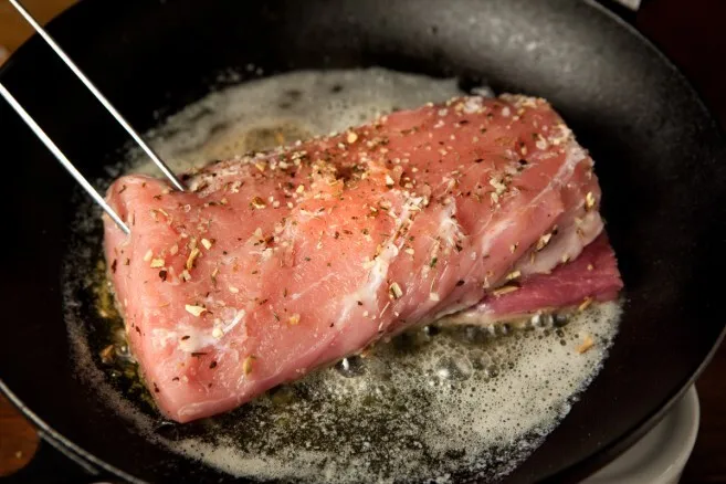 Porsaan ulkofileen ruskistaminen pannulla