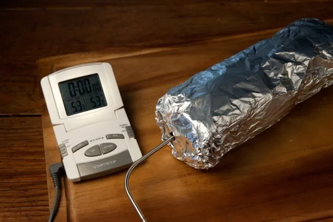 3. Kääri filee alumiinifolioon ja työnnä paistolämpömittari lihaan. Kypsennä fileetä 125-150 asteissa uunissa kunnes lihalämpömittari osoittaa 75 astetta. Anna lihan vetäytyä foliossa vähintään 15 minuutta, jotta lihan sisälämpötila tasaantuu ja mehukkuus säilyy. Lihan sisälämpötila nousee vetäytymisaikana vielä noin viisi astetta.