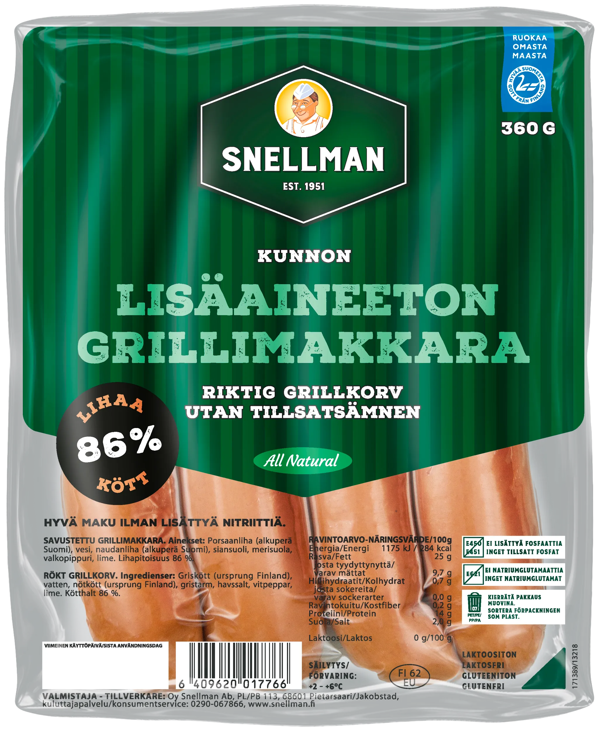 Kunnon lisäaineeton grillimakkara 360 g