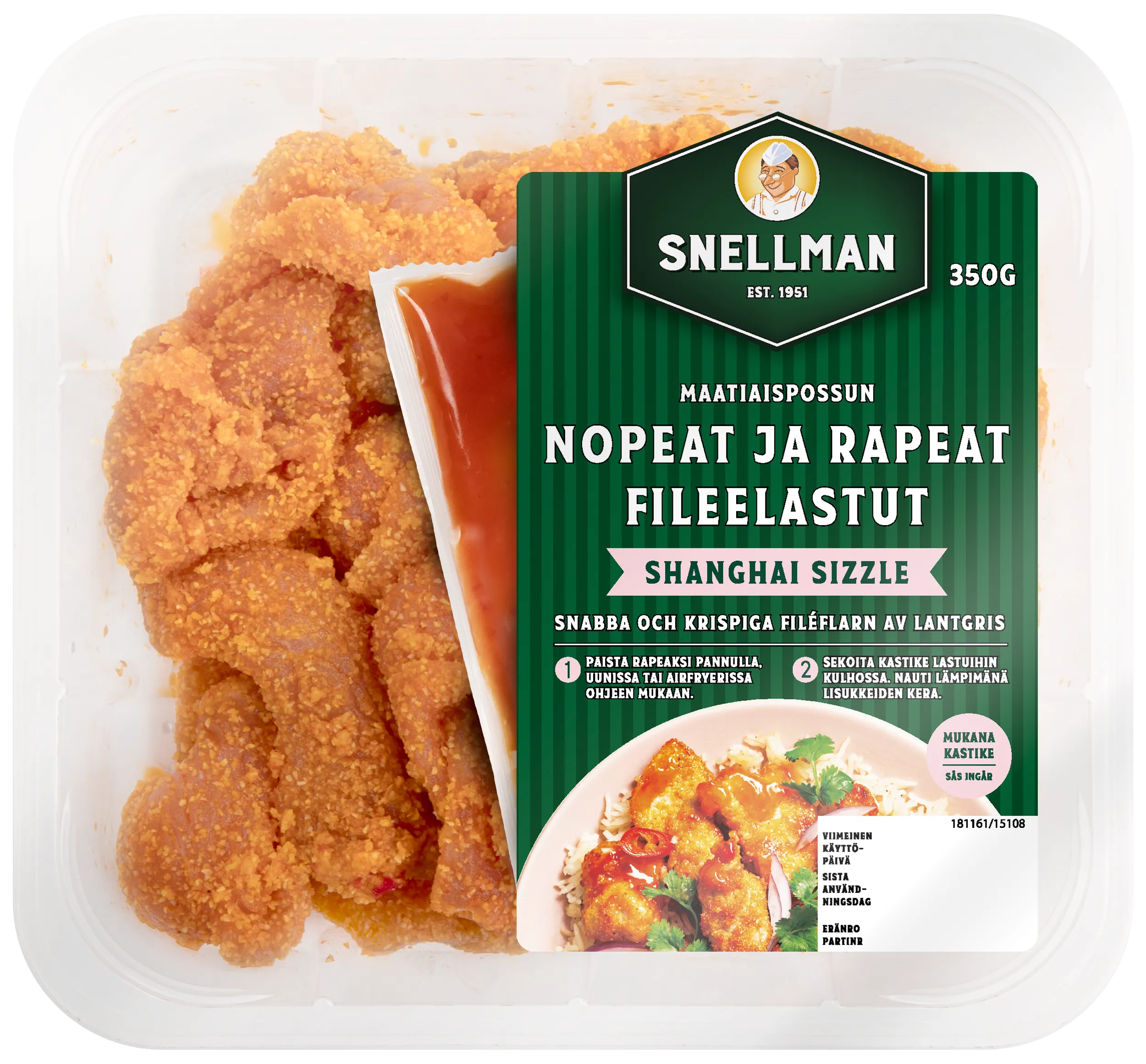 Maatiaispossun rapeaksi paneroidut fileelastut sopivan chilisellä shanghai sizzle –kastikkeella tuovat aasialaisista ravintoloista tuttuja makuja helposti kotikeittiöön. Kastikkeessa on tasapainoinen sekoitus makeutta, raikkautta ja puraisu chiliä. Lastut on helppo ja nopea kypsentää täydellisen rapeiksi airfryerissa, uunissa tai pannulla. Pakkauksen mukana tuleva herkullinen kastike sekoitetaan kypsien lastujen joukkoon. Kokeile pikaruokana nuudeleiden, riisin tai salaatin kera!
