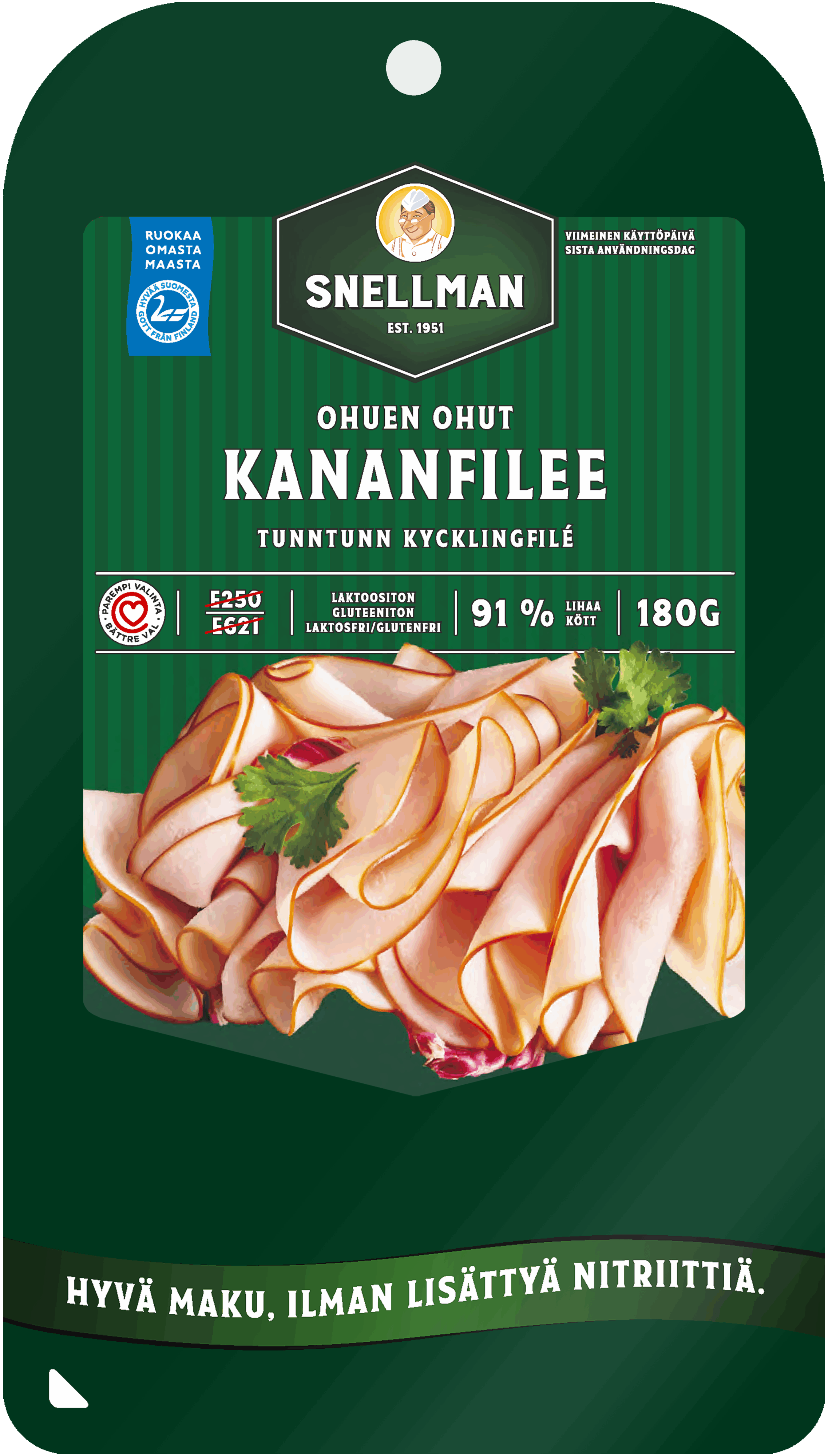 Ohuen ohut kananfilee valmistetaan kotimaisesta broilerista aidosti savustamalla. Murea ja mehevä rakenne ja ohuet viipaleet tekevät siitä täydellisen leivälle. Pakkausta komistaa myös Sydänmerkki, eli kananfilee on myös terveyden kannalta parempi valinta. Ja mikä parasta, se valmistetaan kokonaan ilman lisättyä nitriittiä!