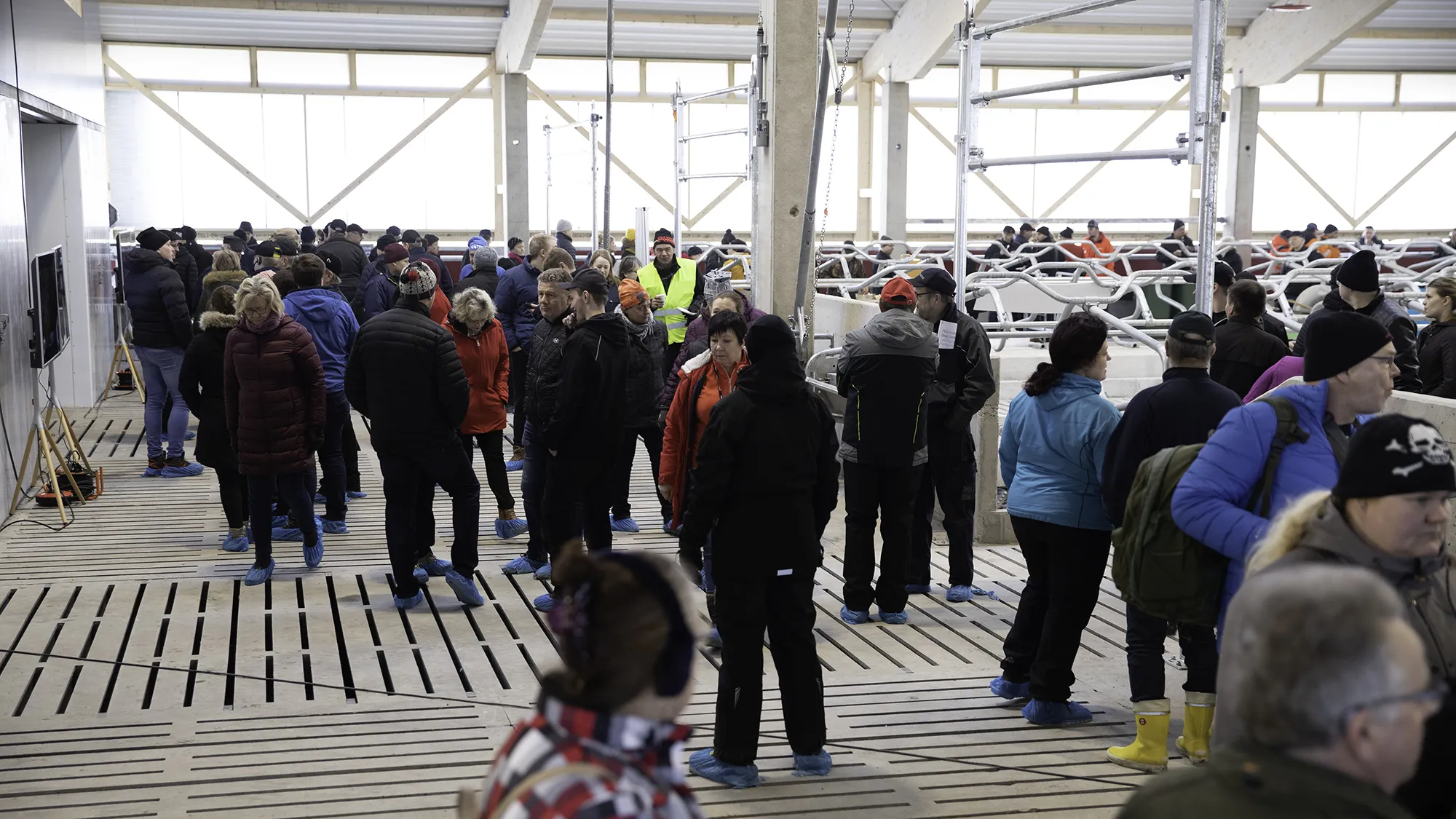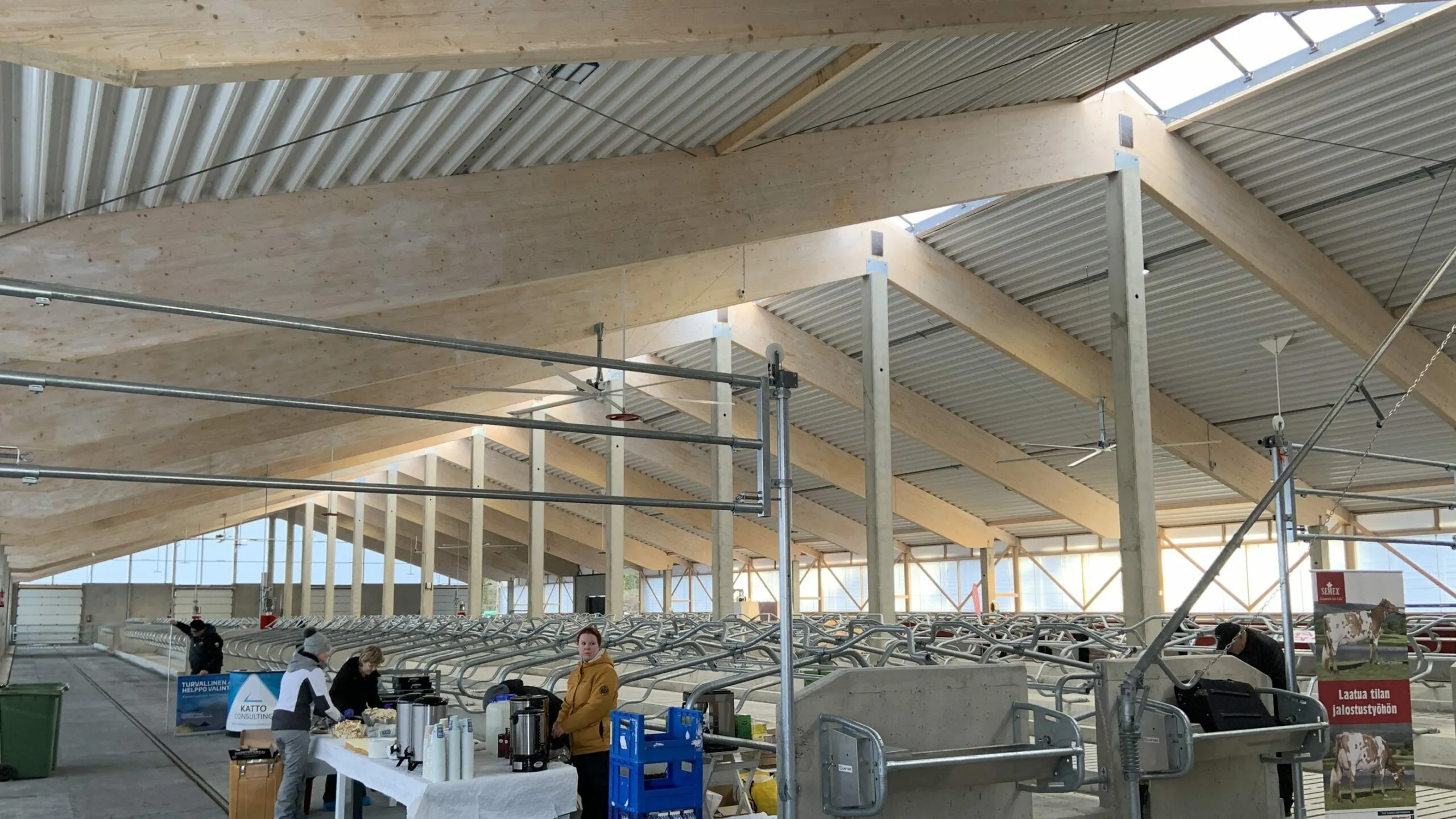 Ihmiset olivat kiinnostuneita, jopa uteliaita ja käyttivät paljon aikaa tutustuakseen uuden rakennuksen erilaisiin ratkaisuihin. Navetan pitäisi olla täydessä käytössä muutaman viikon kuluttua.