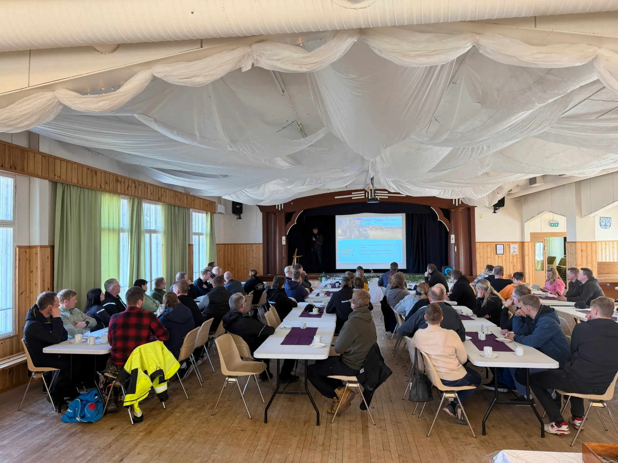 – ”Sanoppa ny niille sitte notta ei”, nauratti leveällä murteella maitopäivien tilaisäntä Timo Viinamäki raittiustalon perinteikkääseen juhlasaliin kerääntynyttä yleisöä.