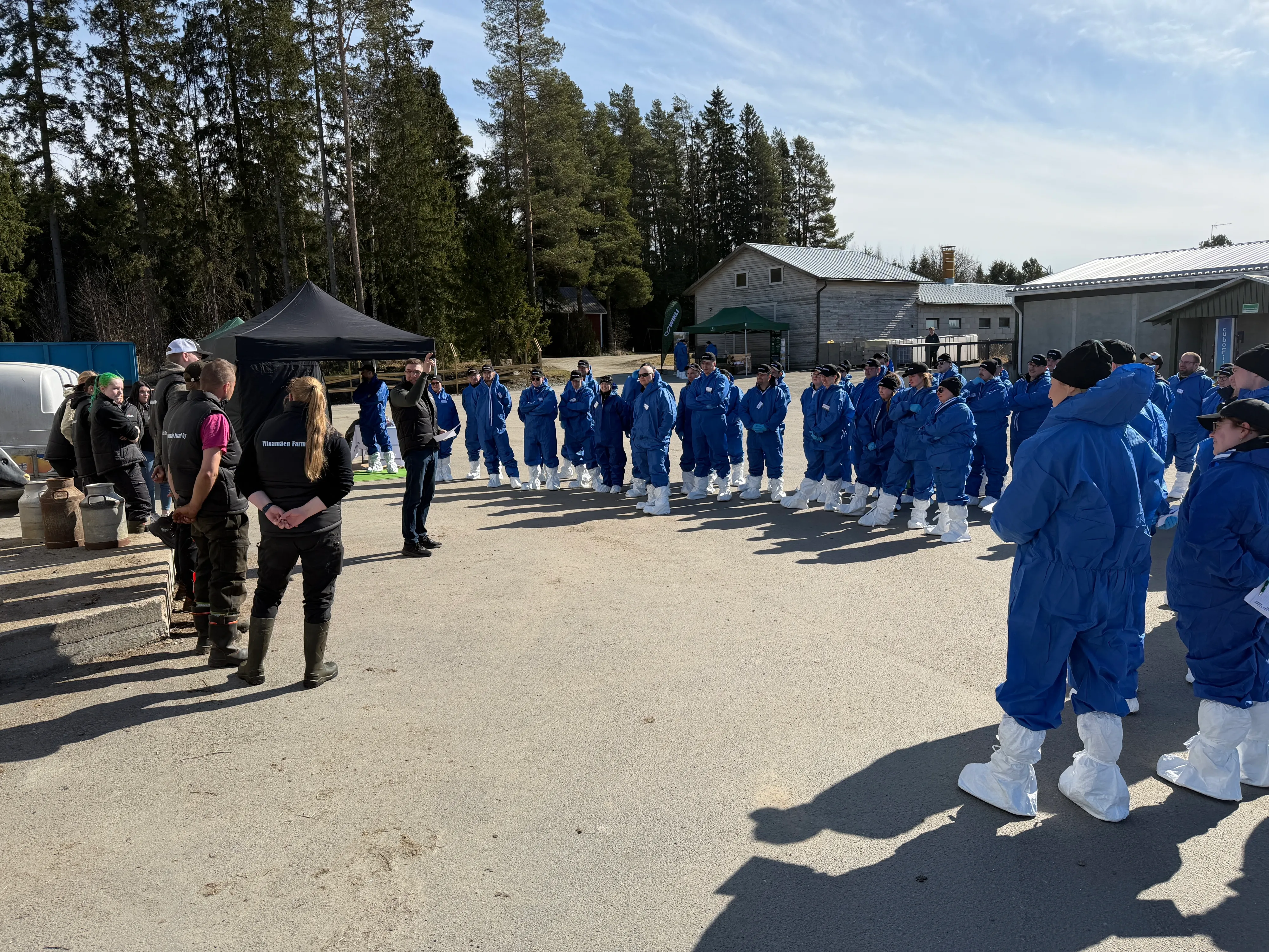 Lyhyen aloituksen ja alustuksen jälkeen vieraat siirtyivät kahden bussin voimin Viinamäen tilalle, noin kolmen kilometrin päähän, auringon paistaessa kirkkaalta taivaalta. Rasteja oli tilalle luoto yhteistyökumppaneiden kanssa yhteensä kahdeksan.