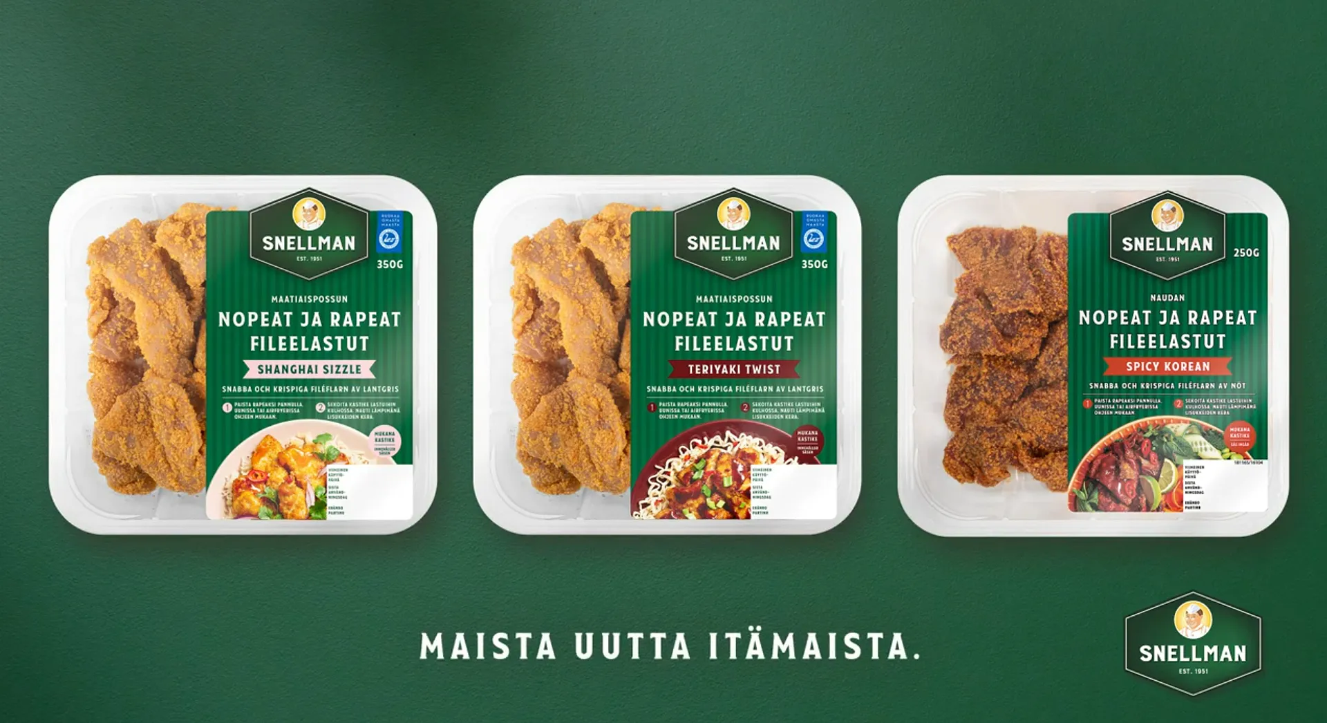 Naudan maissipaneroidut rapeat fileelastut ovat nimensä mukaisesti nopeita ja rapeita. Uutuustuote liittyy aikaisemmin tuttujen maatiaispossun fileelastujen rintamaan, täydentämään Snellmanin tarjontaa.