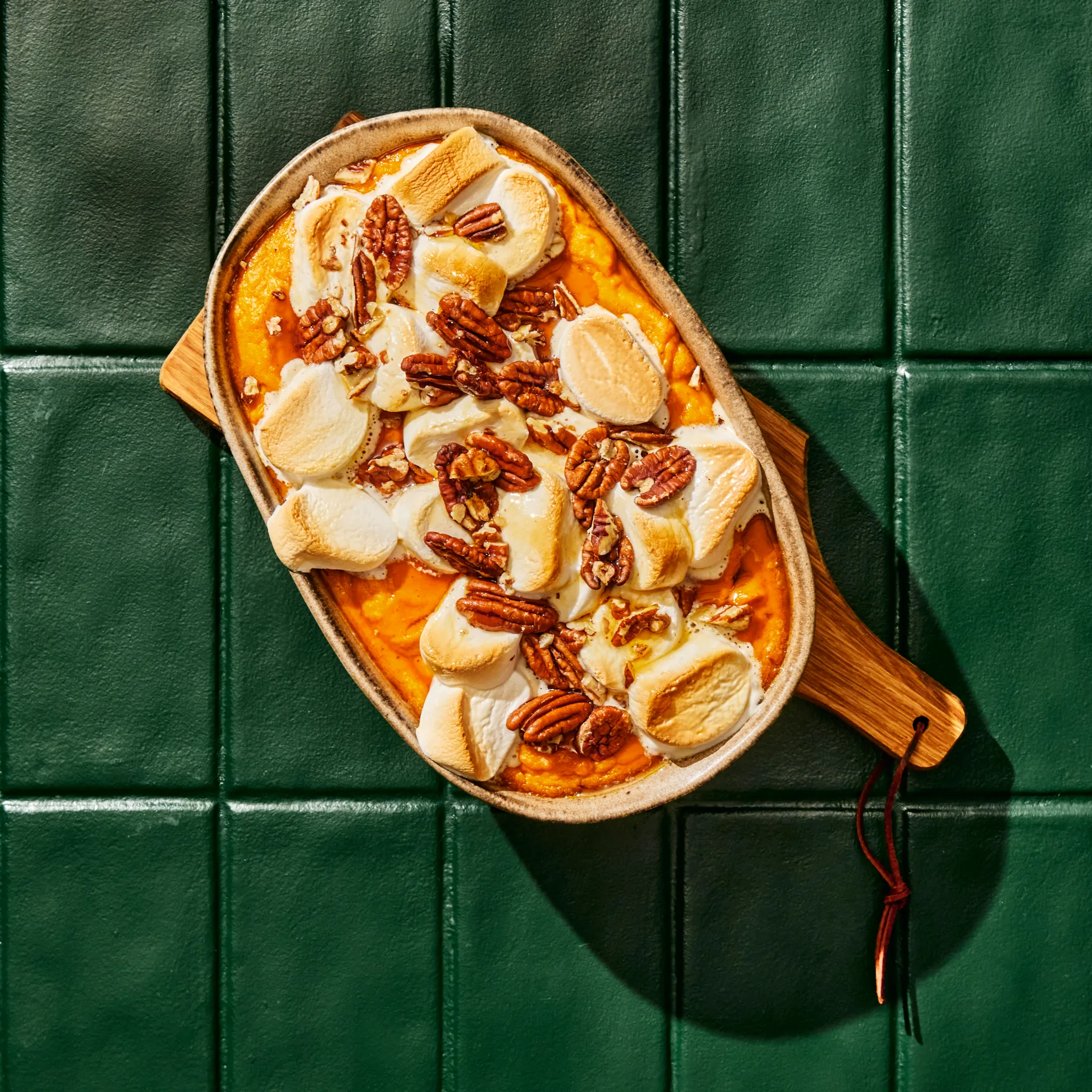 Med detta otroligt enkla tips förvandlar du den här sötsaken till en otippat festlig delikatess med inspiration från kex- och glassvärlden. Kräma först till lådan med grädde och grädda saftig i ugn. Marshmallows och pekannötter i amerikansk stil utgör toppningen, som i ugnsvärmen får en underbart karamelliserad yta.