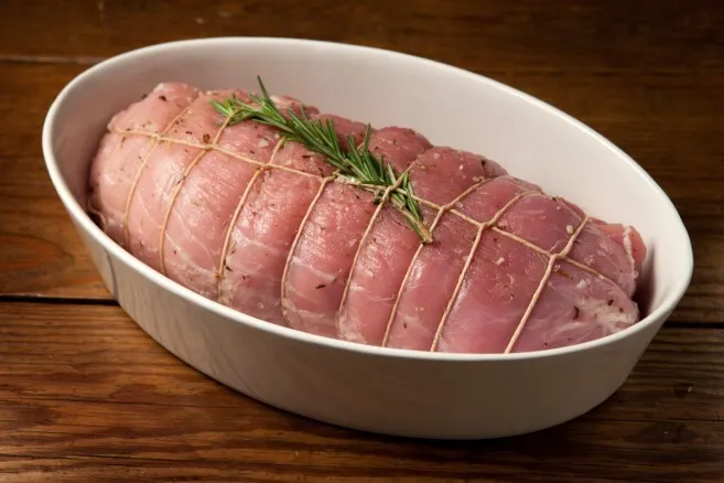 1. Krydda gris innersteken med grovt havssalt och kryddor enligt egen smak. Låt steken dra i sig saltet i rumstemperatur i 1–2 timmar.