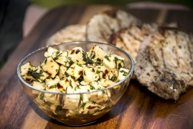 Skär osten i tärningar. Blanda honung, balsamico och olivolja. Hacka citronmelissan fin. Blanda alla ingrediensera och låt stå i kylskåpet en stund. Du kan väl göra denna redan kvällen före.