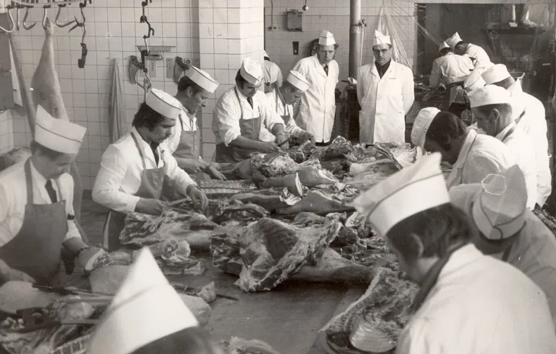 Den första interna köttmästarbildningen ordnades på 1970-talet på Snellman. Hygienkraven inom branschen var inte så höga på denna tid. Rejäla köttsågar, knivar och smycken tilläts. Regler för tillåten hårväxt saknades. Dagens kvalitetskontrollant skulle säkert svimma av förfäran. Var är handskarna? Var är munskydden? Och har ni nu säkert desinficerat knivarna? Det man däremot borde återinföra är slipsar och ordentliga köttmästarmössor!