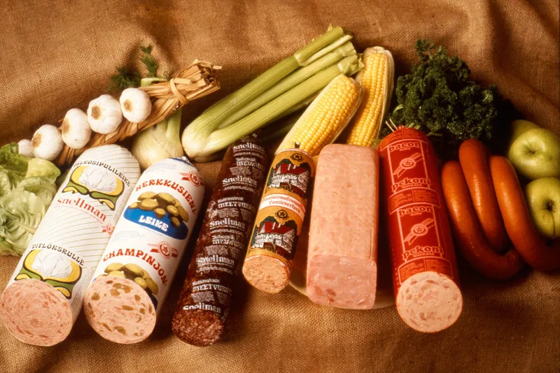 - Snellman var först i landet med Smörgåsskinkan, som var resultatet av egna experiment med tillverkningsmetoder. Tillverkningen inleddes på 1970-talet och metoden gick ut på att man blandade små bitar skinka, tillsatte kryddor och vatten, masserade produkten och kokade den i formar. Även produkterna Mustajussi och Smörgåssaltkött tillverkades på samma sätt.