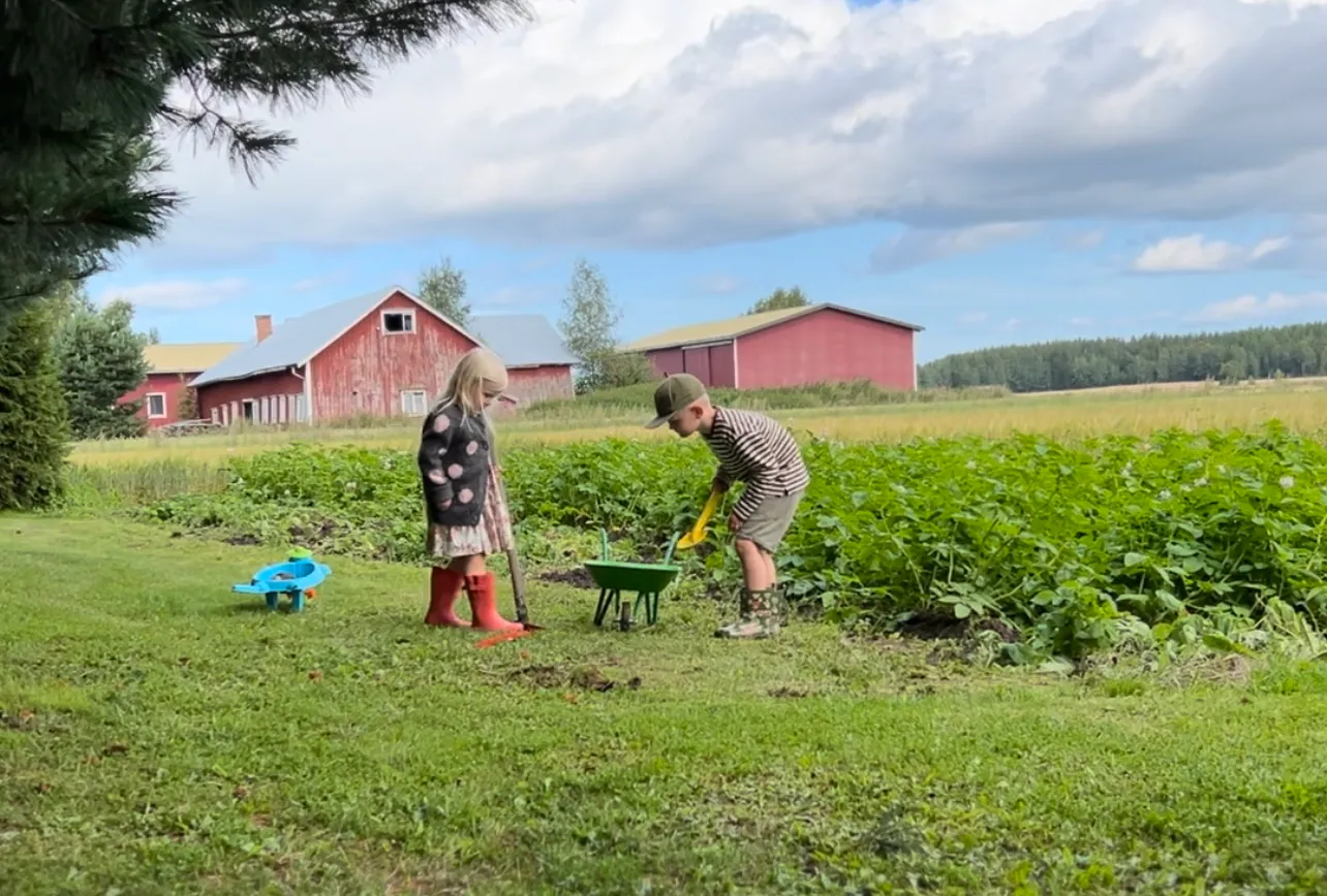 Pappa Bertel Backlund bor kvar på gården och deltar i mån av möjlighet i de vardagliga sysslorna på gården.