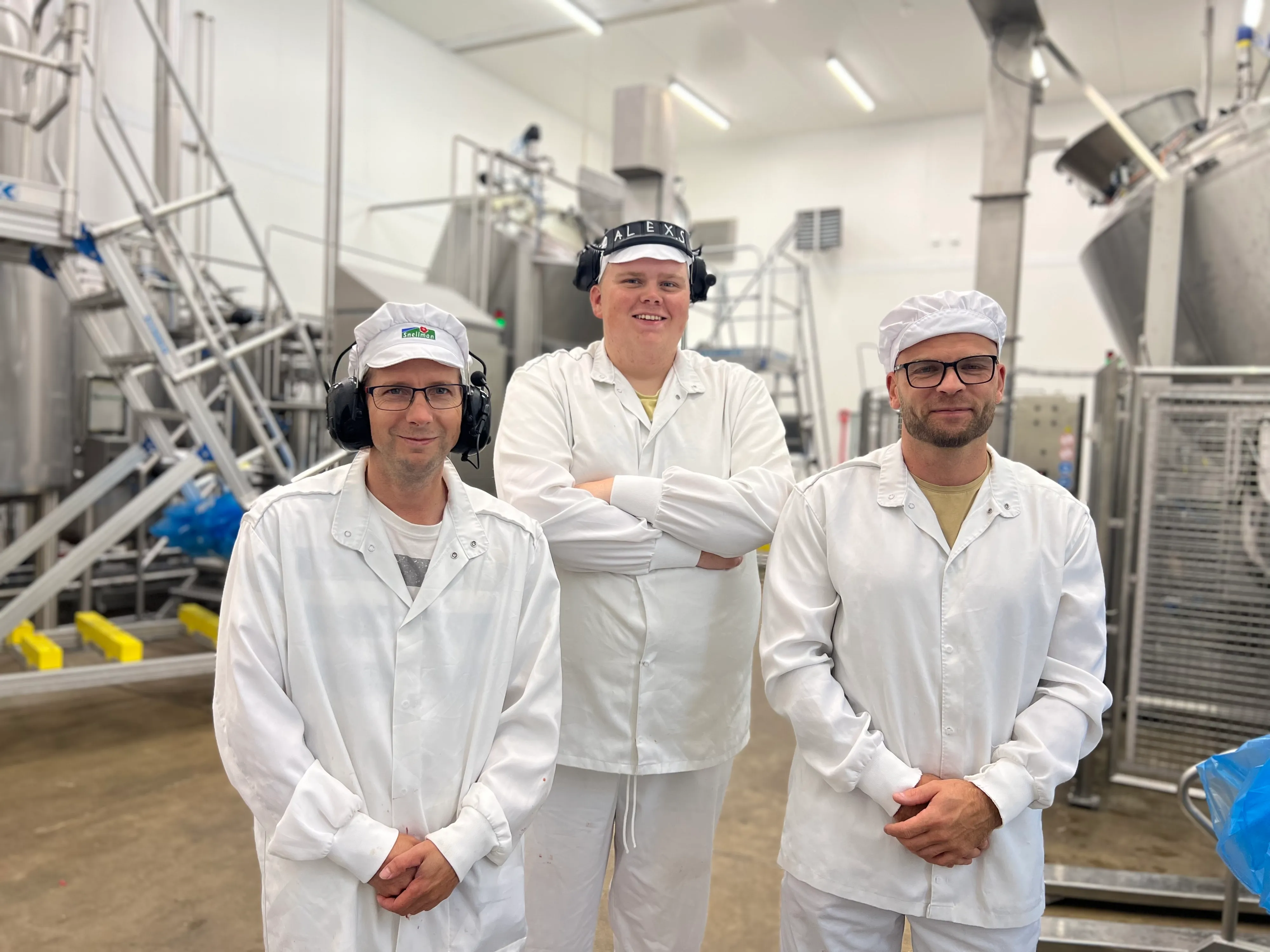 Med ’vi’ syftar arbetsledare Snellman på kollegorna Alex Snellman (på fabriken från sommaren 2020) och Krister Grankulla (på fabriken från maj 2022). Tillsammans opererar trion buljongfabriken med sina två grytor enligt ett beprövat koncept och stabil rotation.