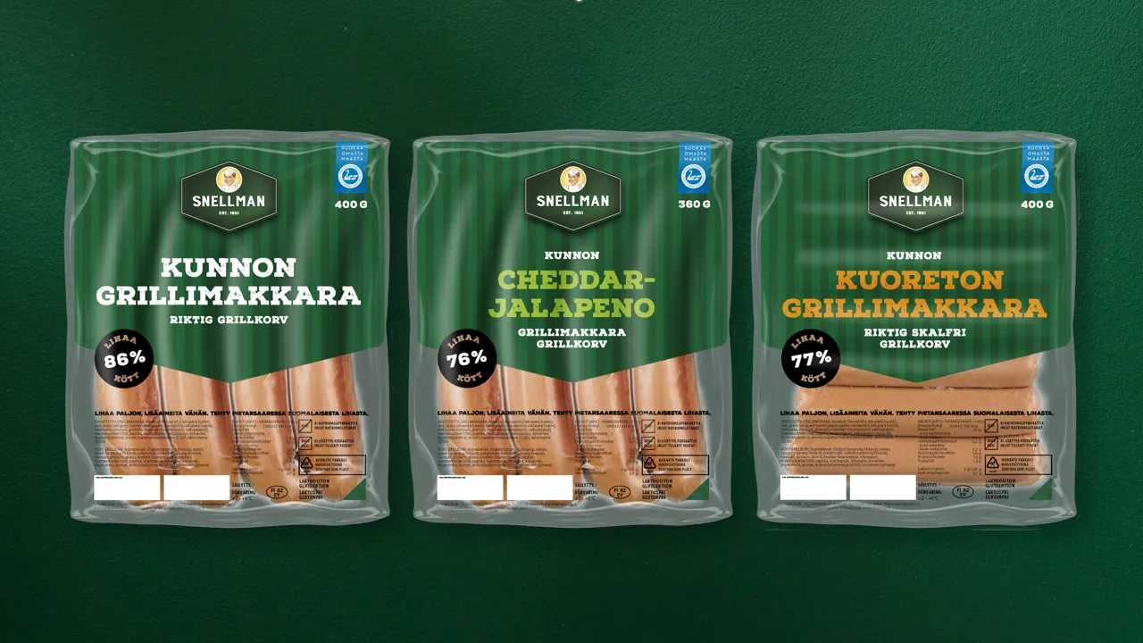 Grillkorv har alltid haft en stark och synlig roll i Snellmans sortiment. Finländarna älskar att grilla korv, och för oss på Snellman har hantverket med att göra riktigt bra grillkorv alltid varit en hederssak. Från och med i vår sker en stor förändring, när de välkända varumärkena Eetvartti och Iivari får ge vika för Riktig (Kunnon) grillkorv.