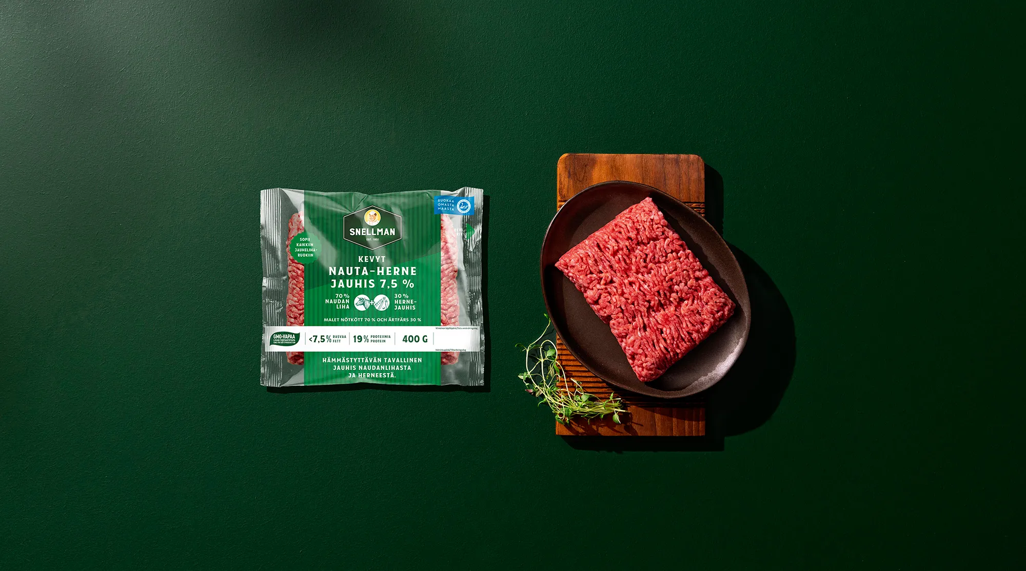 – Vi hade forskat kring hybridprodukter i flera år och samlat på oss mycket kunskap. Vi upptäckte att många konsumenter ville ha alternativ för att kunna öka andelen växtprotein i sin kost utan att behöva avstå från kött. För att tillmötesgå dessa förväntningar utvecklade vi malet nötkött och ärtfärs. Vi är vana vid att vara och vill också vara föregångare och det är även något som förväntas av oss, säger Kai Meyer, Snellman-koncernens produktutvecklingsdirektör.