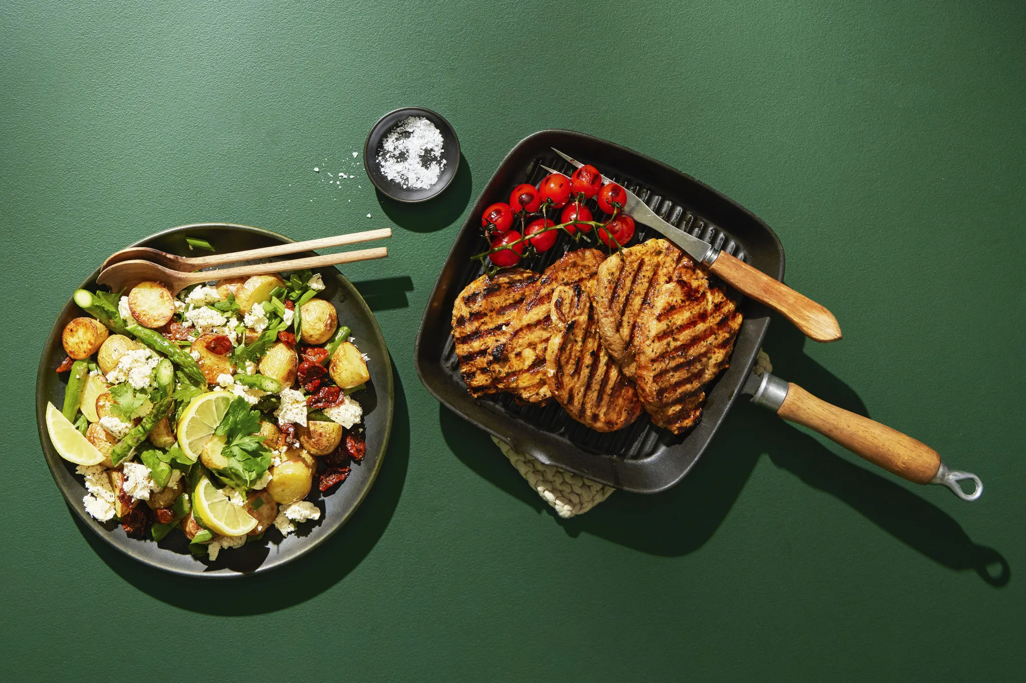 Men även fettsnålare kött kan naturligtvis också vara mört och saftigt. När du tillagar större köttbitar, som hela filéer eller biffar, är det bra att använda en stektermometer för att förhindra att köttet torkar ut. Lantgrisens innerfilé, ytterfilé och stek ska stiga till 70 grader, men inte högre.