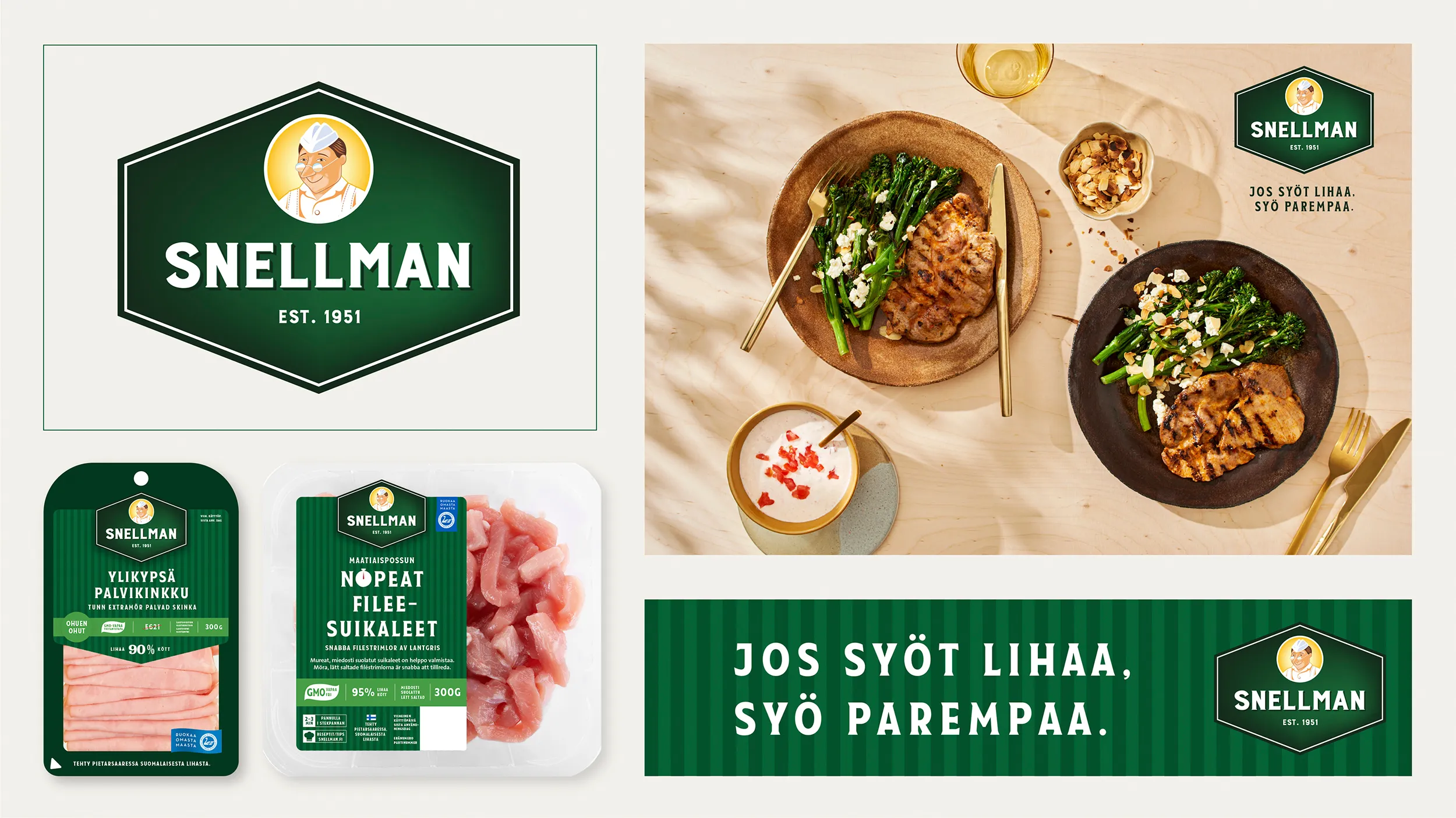 – Vår logotyp började uppvisa vissa åldertecken och vi ville uppdatera både den och våra förpackningars visuella profil för att bättre motsvara den kvalitetsimage som våra produkter bär med sig. Den kännspaka gröna färgen och företagets etableringsår tar plats i den nya logotypen och karaktären Herr Snellman hör naturligt till helheten, konstaterar Snellmans AD Susan Hedman.