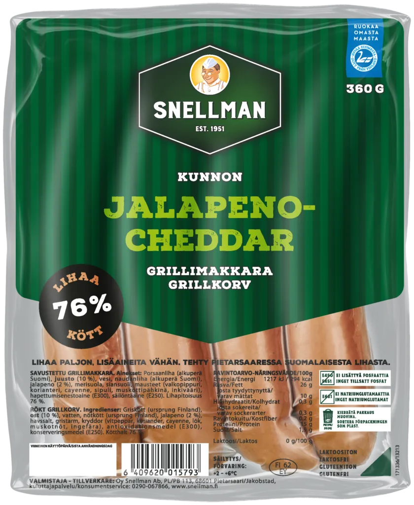 När man använder rejält med riktigt malet kött från Snellmans och tillsätter egen buljong tillsammans med äkta kryddor innan man tillreder de gyllenbruna köttbullarna eller biffar finns det inget behov av tillsatser. Snellmans Riktiga köttbullar. Dessa köttbullar är gjorda med allt sånt du hittar hemma i köket, säger produktutvecklare Ove Snellman.