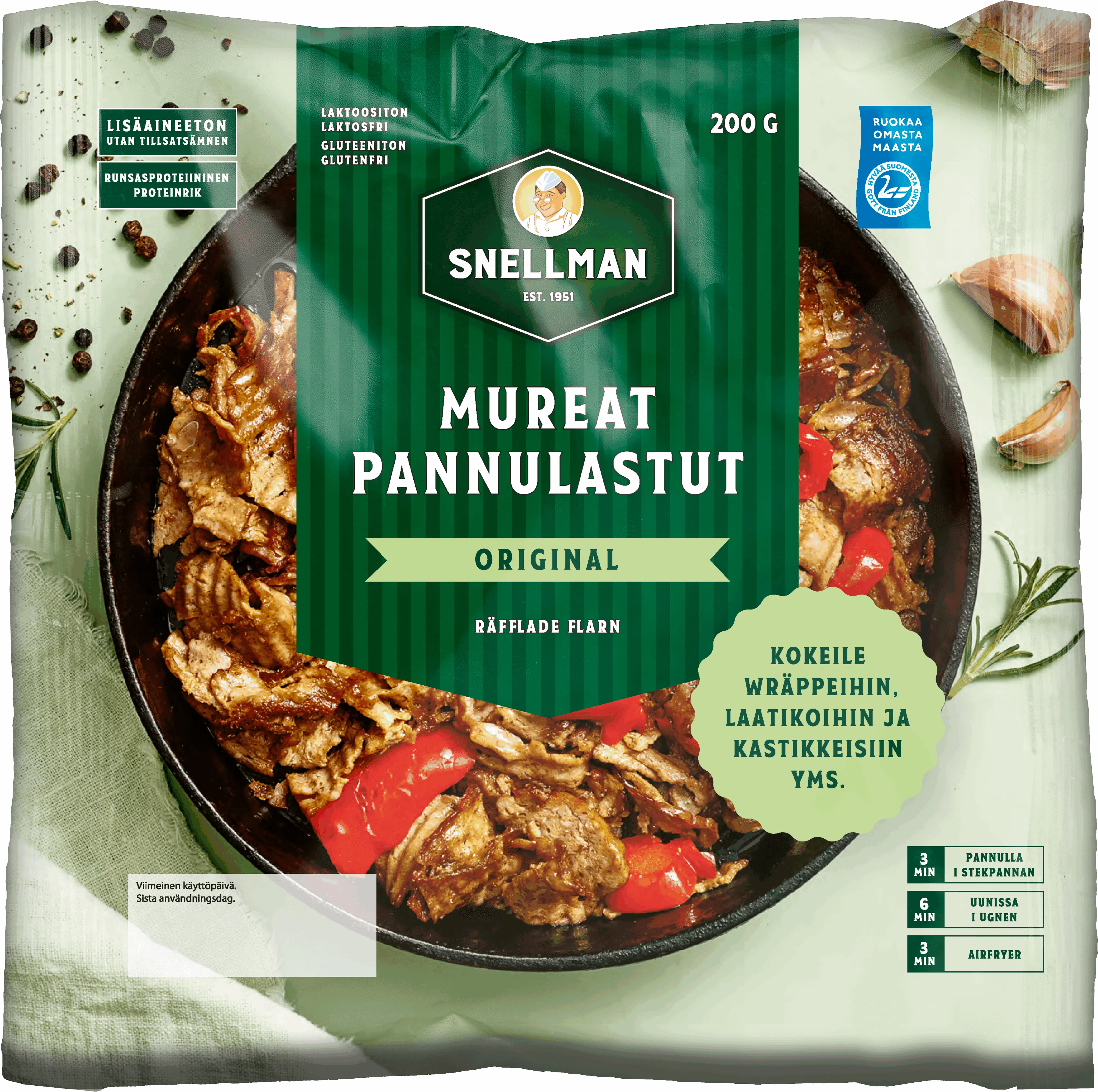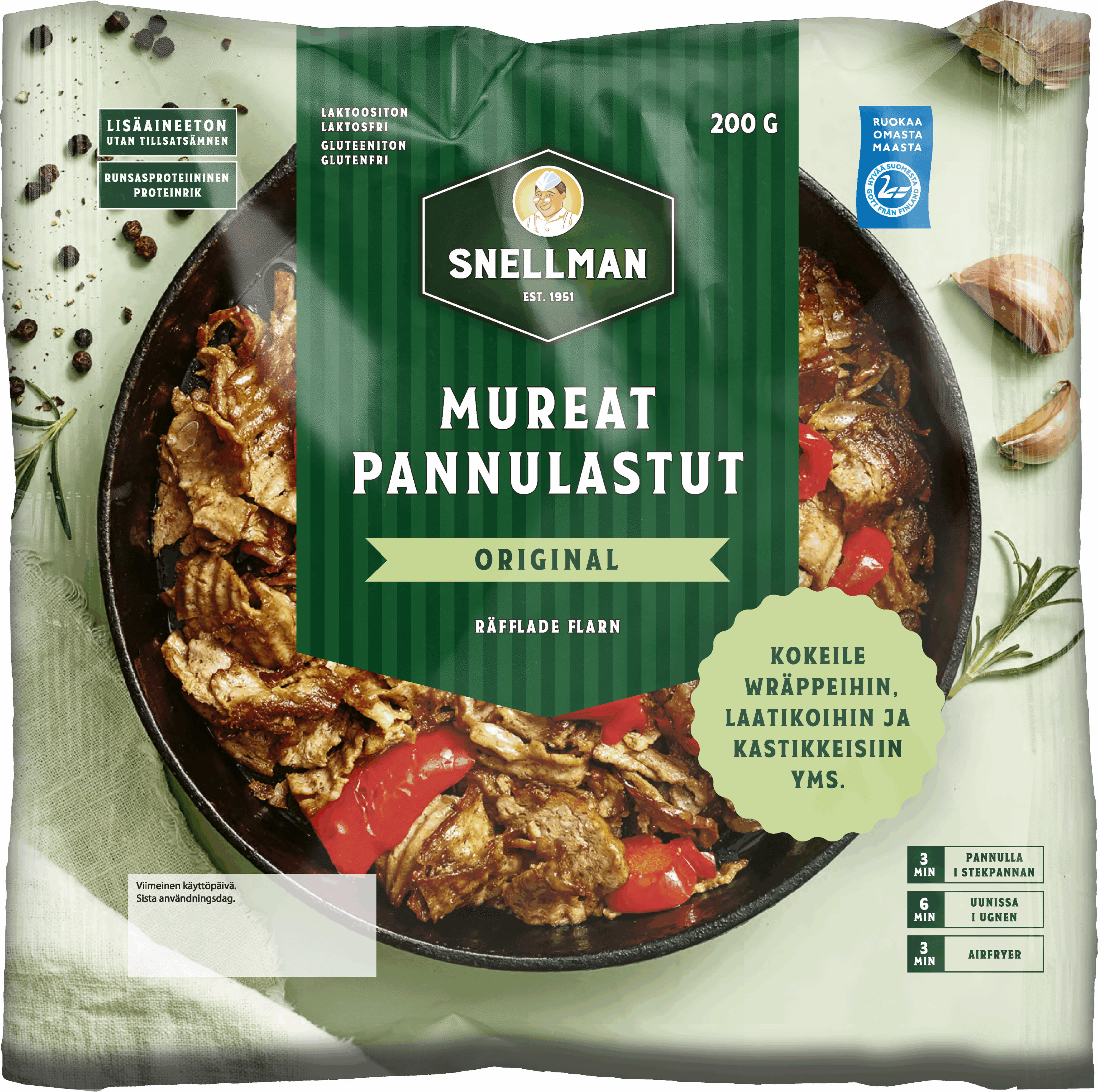 Möra räfflade flarn är den stressade kockens räddning! Köttiga och saftiga, färdigkryddade och ätklara flarn som tillagas helt utan tillsatser. Original är smak som passar de flesta – kryddig, men inte alls stark. De tunna, räfflade flarnen med sitt skojiga våffelmönster blir en läcker måltid på några minuter. Pröva i sallader, wraps, såser eller varför inte i gratänger och lådrätter!