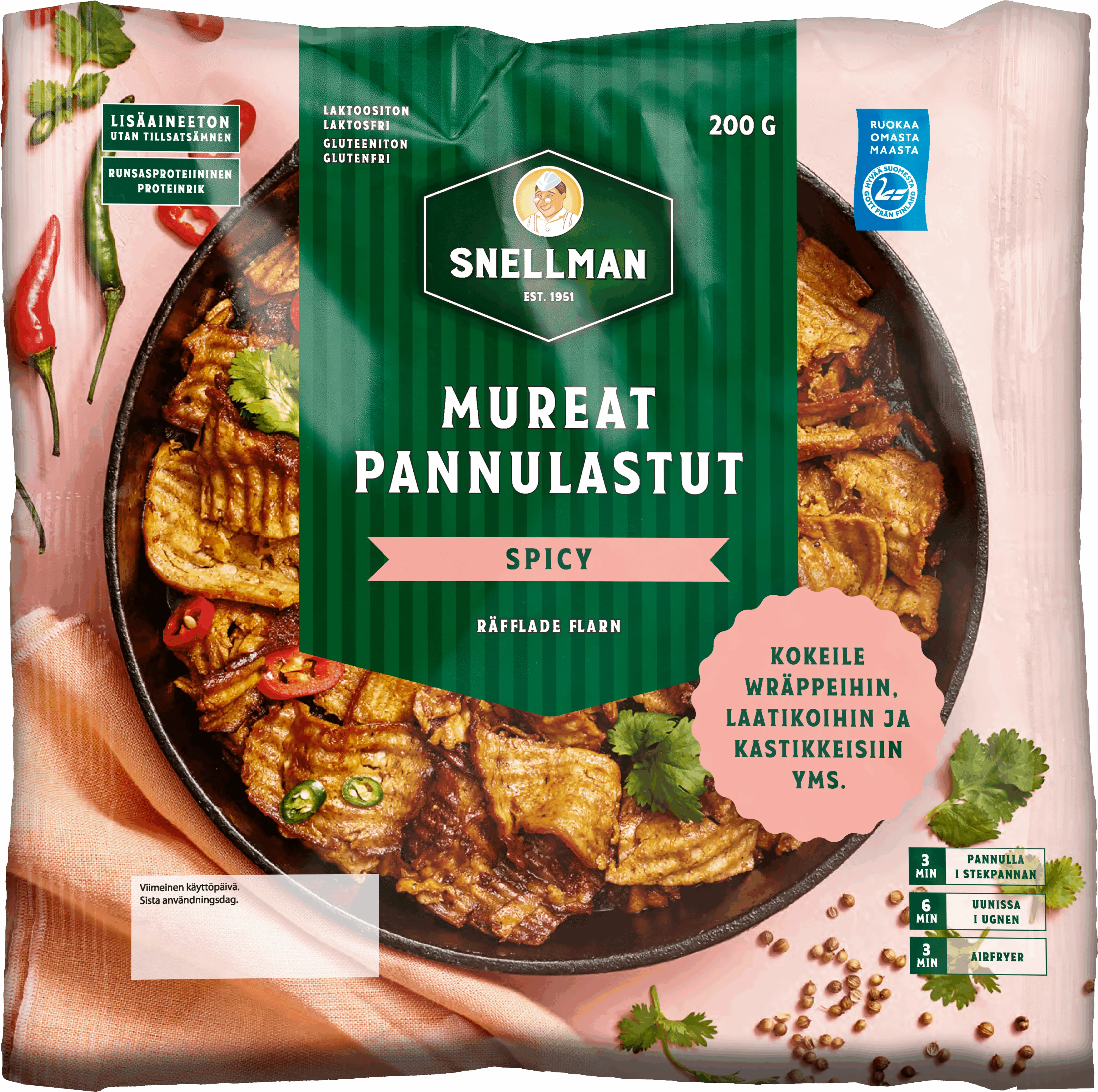 Möra räfflade flarn är den stressade kockens räddning! Köttiga och saftiga, färdigkryddade och ätklara flarn som tillagas helt utan tillsatser. Spicy alternativet ger dig lite mera härligt sting som smakprofil. De tunna, räfflade flarnen med sitt skojiga våffelmönster blir en läcker måltid på några minuter. Pröva i sallader, wraps, såser eller varför inte i gratänger och lådrätter!